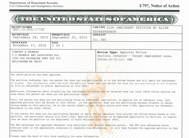 今天接到律师的通知,我司美国客户张总(化名)的儿子仅仅用了13个月的时间,即成功获批I-526,比移民局的平均审批时间还快!张总早前就美国项目咨询了多家移民公司,最终锁定我司。事实证明,移民申请顺利获批,就是我司对客户的信赖最好的回报!