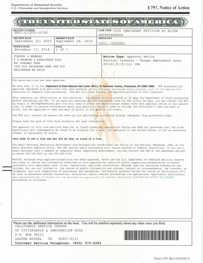 2016年11月17日 获批I-526