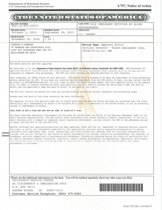 2016年11月30日 获批I-526