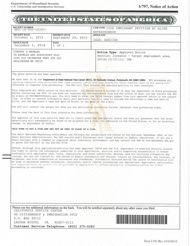 集团再次给大家交上满意的移民成绩!2016年12月1日,我司美国投资移民客户林生(化名)顺利获批I-526。从递件到获批,林生获批速度远快于