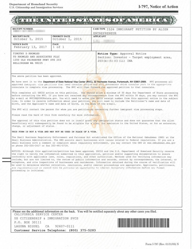 2017年2月13日——获批I-526,零补件通过