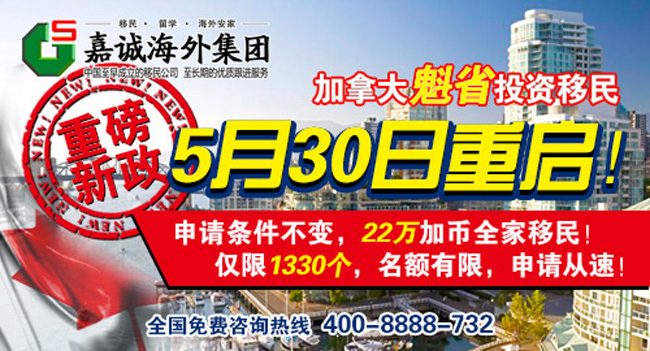目前魁省投资移民的名额所剩无几,22万加币移民加拿大实在不容错过! 集团作为中国至早成立的投资移民公司,拥有至长期的优质跟进服务,成立至今一直保持零投诉佳绩。我司在全球多个国家设有分公司,有多年的办理成功案例的经验,由资深移民顾问、注册会计师、持证专业律师和教育专家组成安家团队,为顾客提供留学、就业、移民、安家一条龙服务,多年来成功帮助多个家庭移居加拿大。如有任何疑问,请立即致电 全国免费热线详细咨询吧!