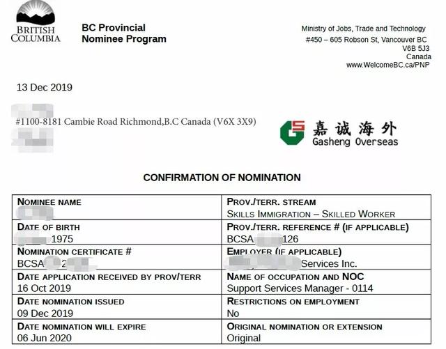 8、面试通过,BC省发出提名信和工签函