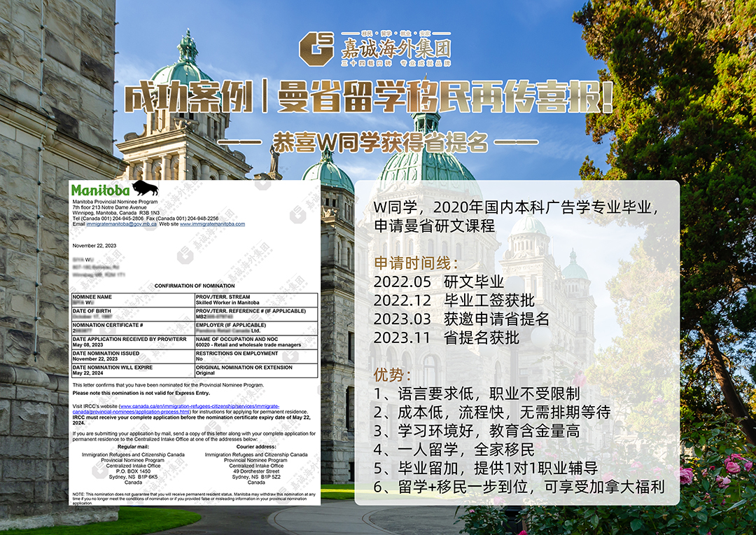 (加拿大)成功案例I曼省W同学留学移民再传喜报!