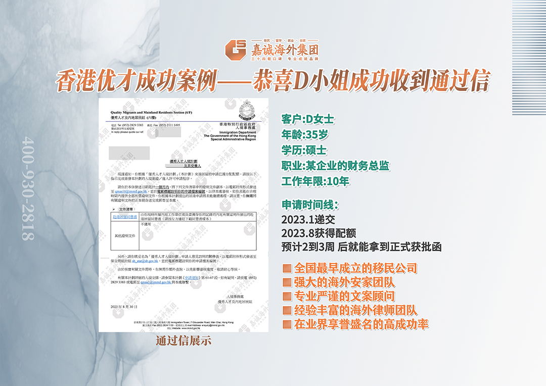 香港优才成功案例——恭喜D小姐成功收到通过信