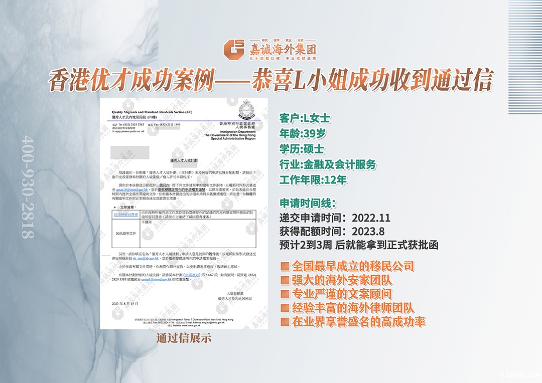 香港优才成功案例——恭喜L小姐成功收到通过信