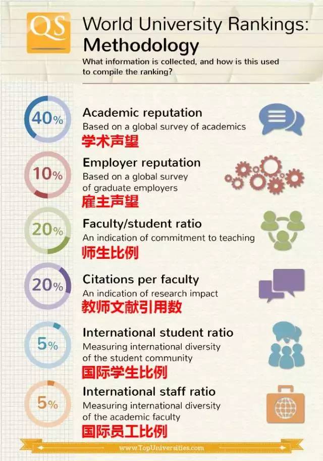 QS世界大学排名--评分标准基于六大指标:(总计100%)