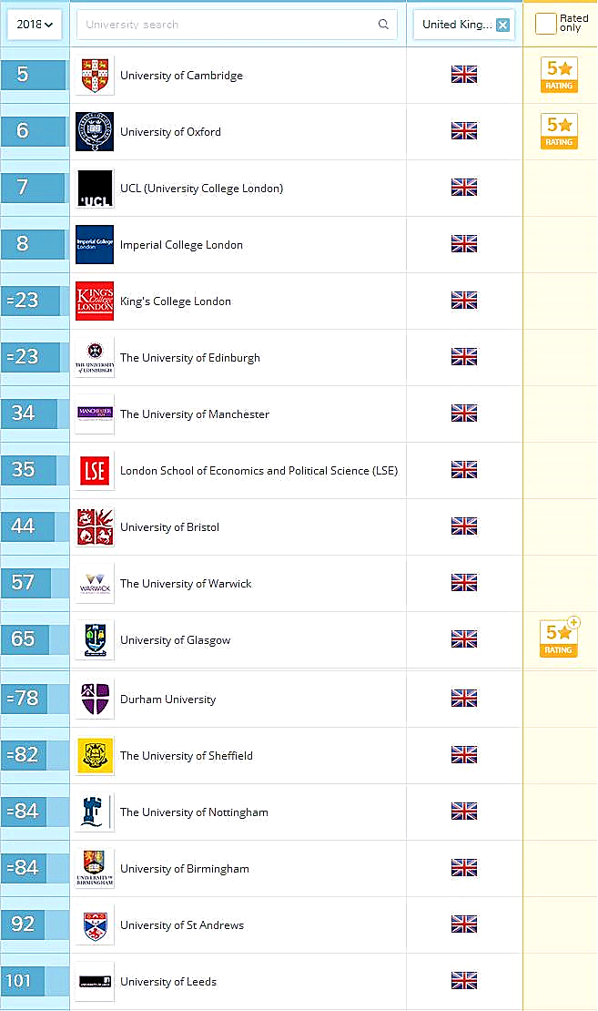 QS世界大学排名:(QS World University Rankings)是历史第二悠久的全球大学排名,与独立后的泰晤士高等教育世界大学排名及世界大学学术排名共同被认为是世界三大最具影响力的全球性大学排名。