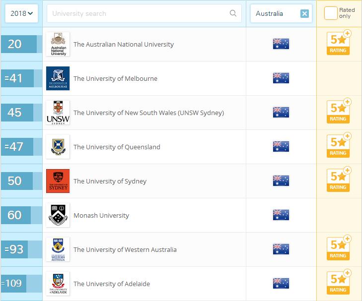 解读:在这次排名当中,澳洲八大普遍名次都上升了。在2017年有6所大学进入前100名,2018年西澳大学冲刺成功,也进入了前100,目前八大中有7所都进入了前100。2017年澳洲只有7所大学的排名在100-300 区间,2018年增加到了9所大学。科廷大学和迪肯大学都杀入了这个300这个关卡。大多数大学排名都有不小幅度的上升。