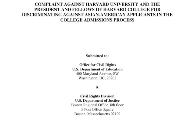 近年来,美国亚裔教育联盟联合多个亚裔团体向美国教育部和司法部投诉哈佛大学,指责哈佛在招生过程中歧视亚裔学生,以各种手段来限制亚裔学生的名额。