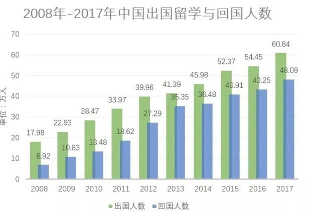 从教育部获悉,2017年,我国出国留学人数首次突破60万大关,达60.84万人,同比增长11.74%,持续保持世界最大留学生生源国地位。