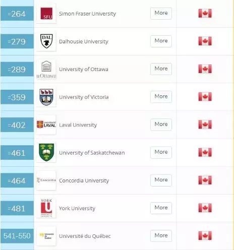 加拿大三大名校:多伦多大学、麦吉尔大学、英属哥伦比亚大学依然遥遥领先,其他大学在今年的排名中也是稳中有升。