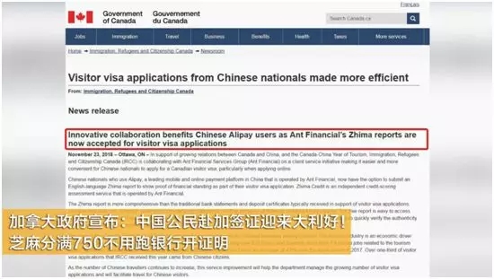 这意味着中国游客办理加拿大签证时,可以不用再跑银行去打印流水单和存款证明,而是选择使用芝麻信用签证报告。