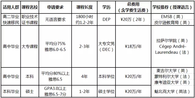 移民魁省的PEQ留学移民方案适用人群范围非常广,学生只要在魁省教育局认可的教育学院攻读相应的课程,获得职业教育/大专/本科/硕士学位,均可快速实现留学移民。