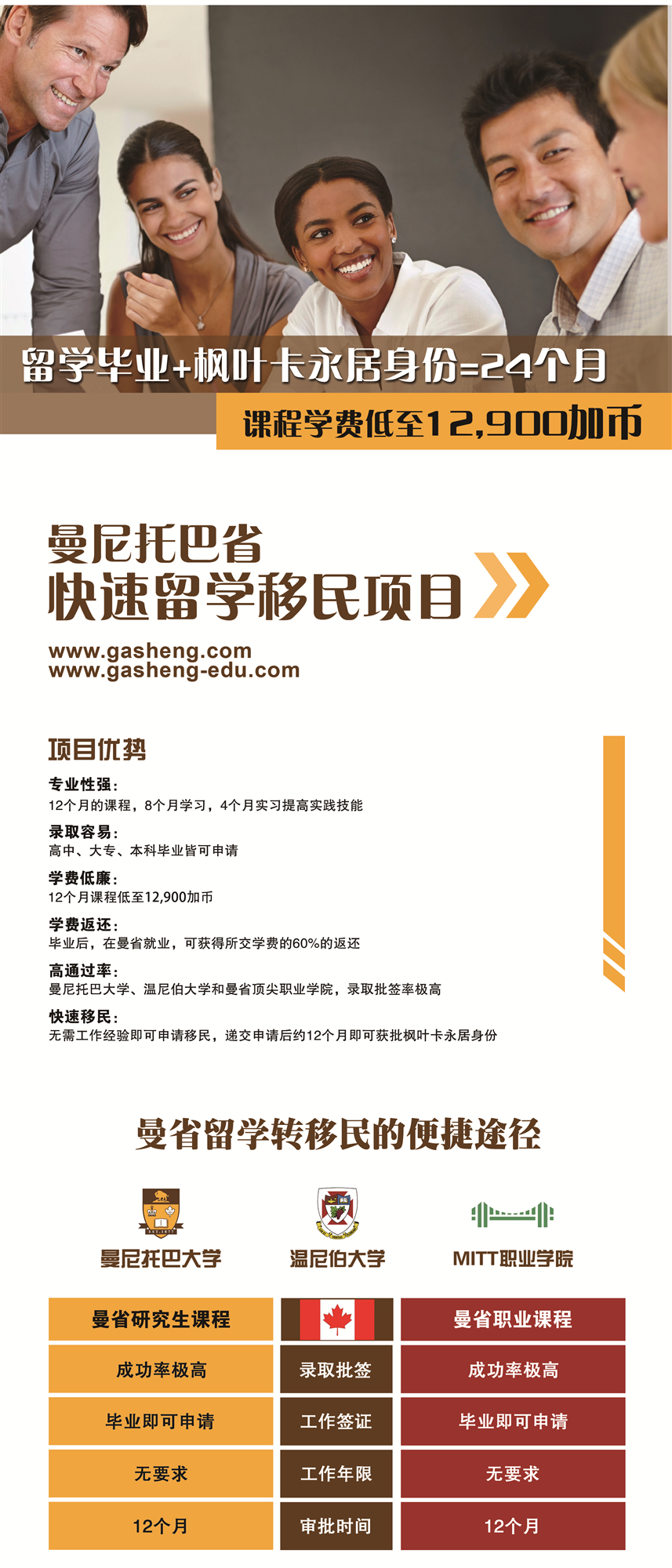 而目前加拿大对优秀人才的需求日益增多,移民局也希望收获更多优质资源,弥补当地紧缺的就业市场。在此背景下,加拿大曼省留学移民则以低成本、最快捷的方式脱颖而出——“留学,工作,移民一步到位”,成为快速移民加拿大的直通车!