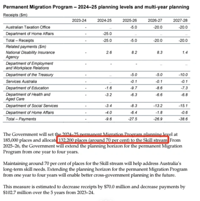 另外,自2025-26财年起, 澳洲政府将把永久移民计划的规划期从一年延长到四年 。