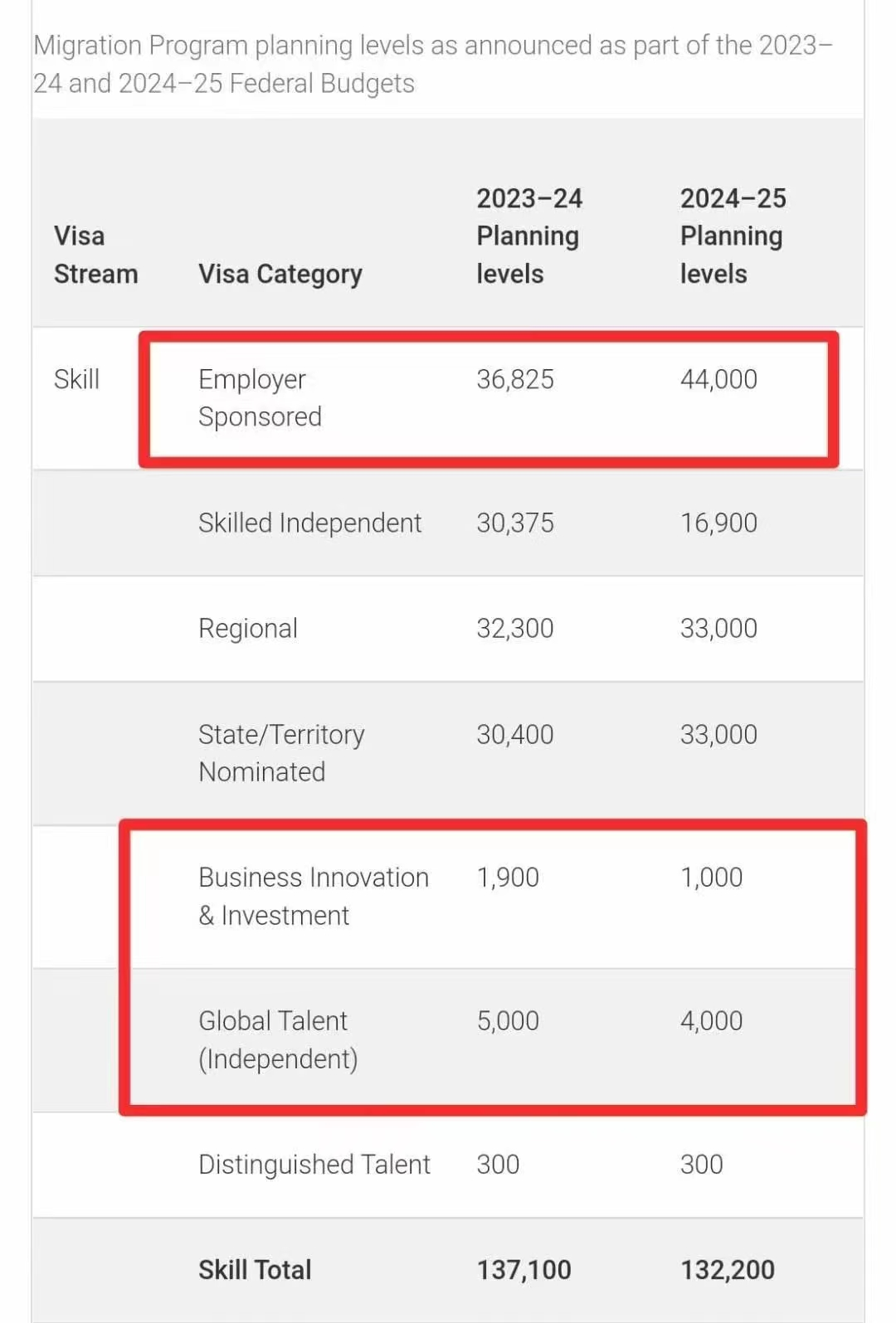 GTI杰出人才移民的配额相比上个财年也有所减少,2024-25财年配额是4000个。 GTI签证将被National Innovation visa国家创新签证所取代 。该签证主要是为了吸引优质企业家,重大投资者和全球研究人员。