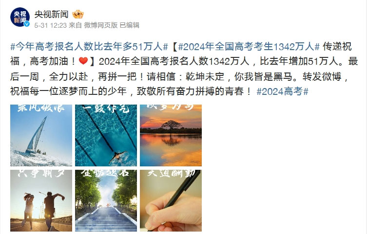 数据显示,今年高考报考人数再创新高,有1342万考生踏进考场,比去年激增了51万人。这是自1977年恢复高考以来,中国高考人数首次突破1300万大关。