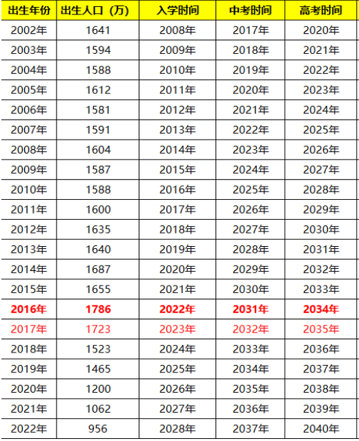 考虑到自2008年起出生人数的持续增长,直至2017年达到峰值,而这批人口顶峰将在2034至2035年间集中参加高考。