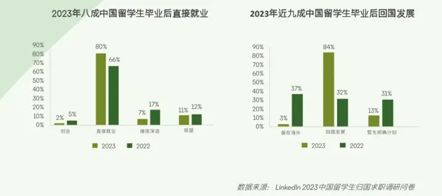 近日,全球大型招聘平台领英(LinkedIn)发布了《2024中国留学生归国求职洞察报告》。报告显示,超八成的留学生选择毕业后回国发展。