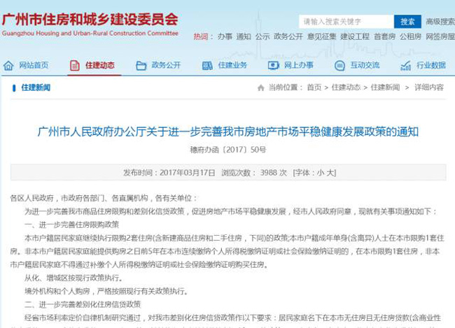 小编的朋友圈一片哀嚎。原来,3月17日,广州市住房和城乡建设委员会连夜发布了《广州市人民政府办公厅关于进一步完善我市房地产市场平稳健康发展政策的通知》,且政策规定自2017年3月18日起执行!
