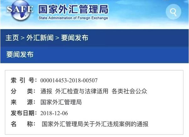 12月6日,中国国家外汇管理局发布最新外汇违规案例的通报,报告了15起违规典型案件。