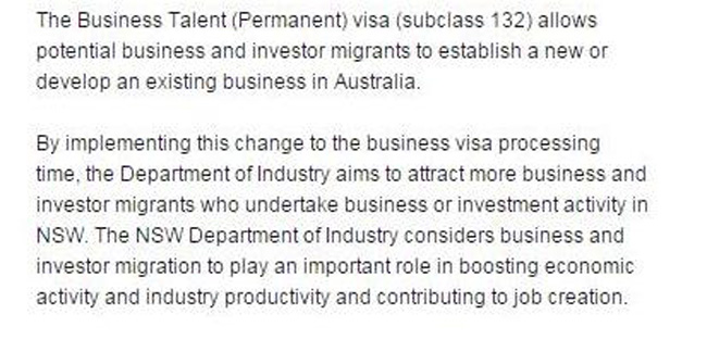新南威尔士缩短132商业天才移民签证的州政府提名审批时间,旨在吸引更多优秀的商务人士来新南威尔士州设立新生意或发展现有企业,为新州的经济做出贡献并发展更多工作机会。