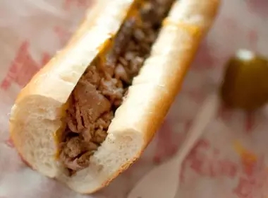 这个混合了牛排和芝士的三文治算得上是费城的经典美食了。据说它是从20世纪30年代的热狗改良而来的,现如今早已风靡整个费城甚至美国,并且还能根据顾客口味不断改良,例如意大利的波萝伏洛干酪,美国的Cheez Whiz(美国干酪)都是很受欢迎的口味,配料有烤洋葱,蘑菇,辣椒,番茄酱,蛋黄酱和沙司酱供选择。