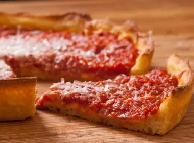 相比之下,典型的纽约披萨是大而薄的形状,以番茄酱或意大利干酪作为酱料,面饼很脆却又很有韧性,恰好能承受住饼上的重量。看到这里,你是否在选择厚底披萨和纽约披萨中纠结了呢?那么下次你来美国的时候,尽可能选择芝加哥—纽约披萨之旅,让地道的披萨专家一一为你揭开它们的神秘面纱。