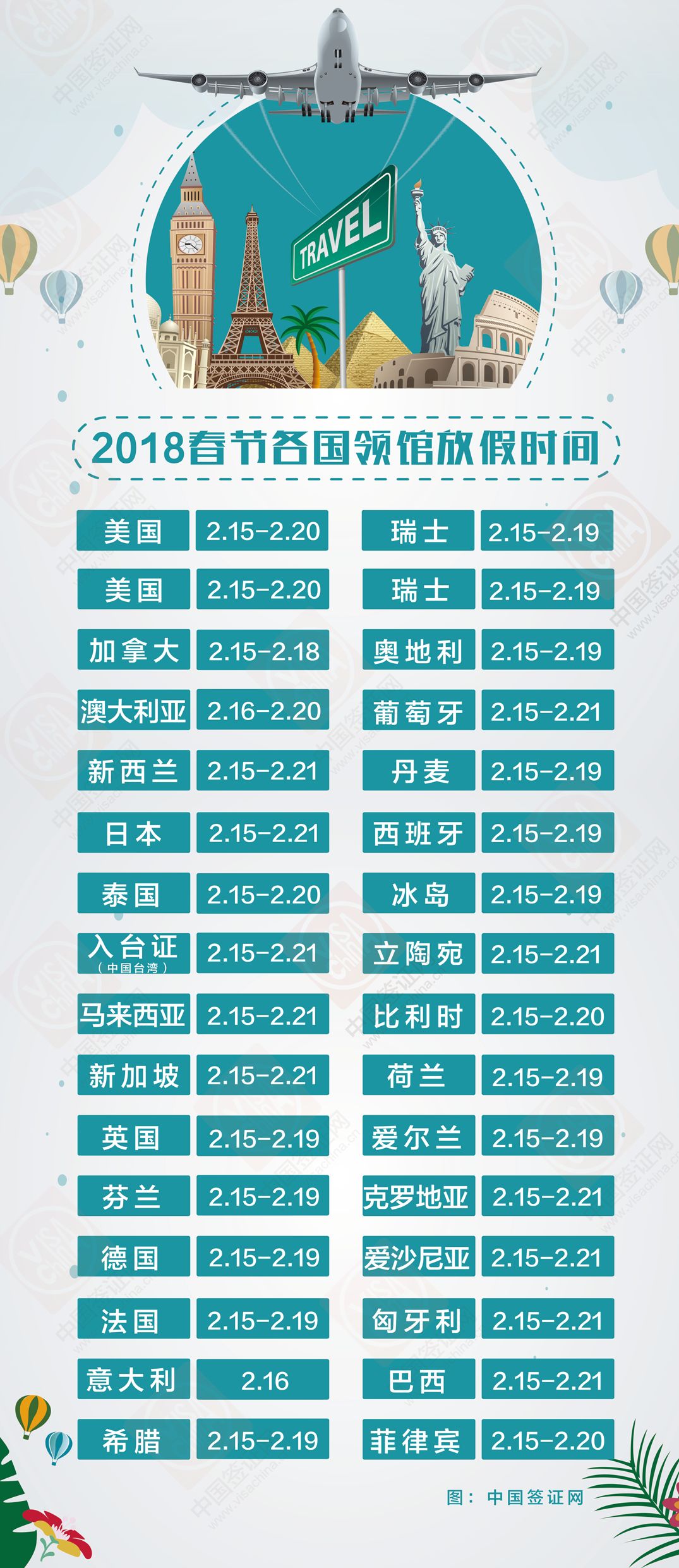 附2018春节各国领馆放假时间表