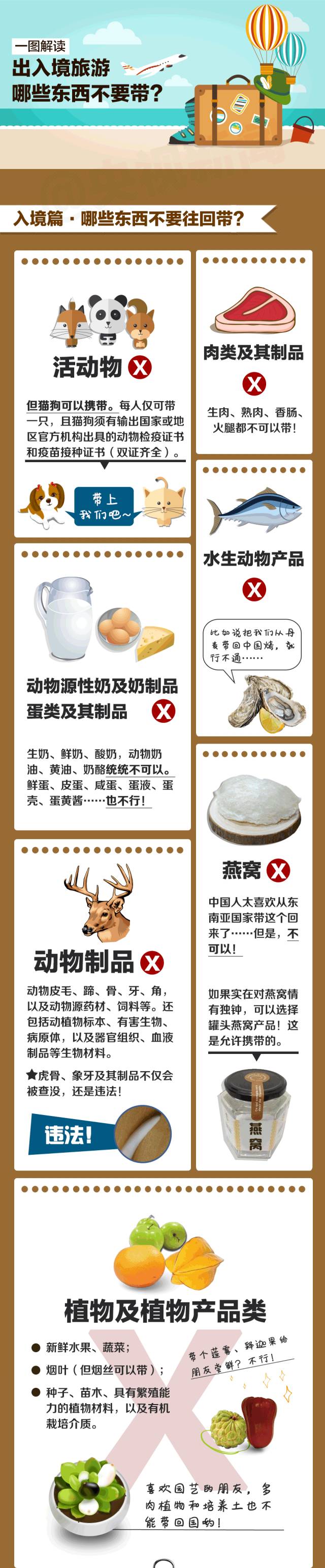 在外旅行,或多或少都会为亲朋好友带些手信。但如果这些礼品刚好是当地的土特产,大家就要格外注意了。请大家在出发前务必仔细阅读下图,避免因行李产生的不必要的困扰。
