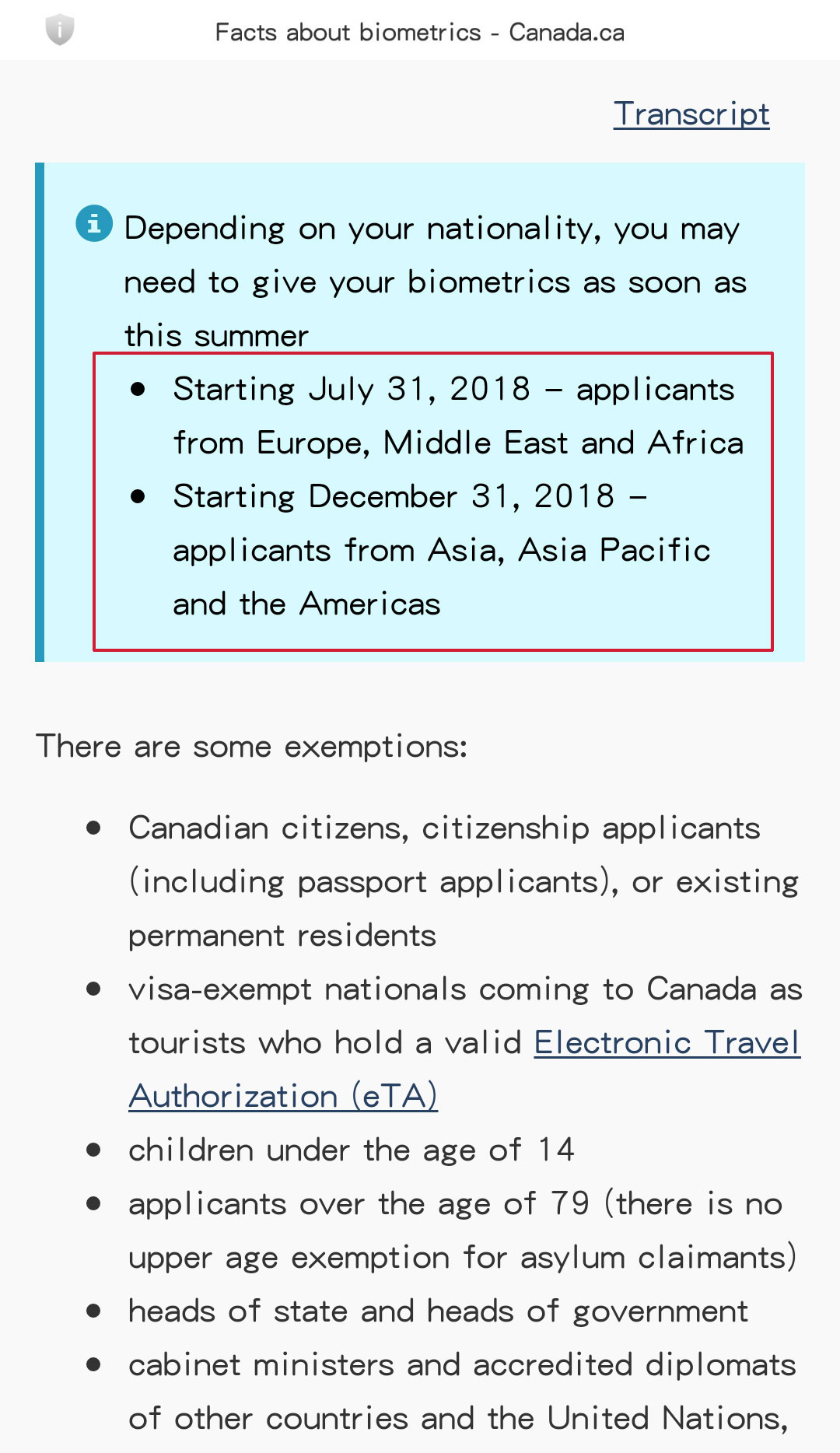 根据加拿大移民局官网发布的最新消息,自2018年12月31日起,所有需要办理加拿大签证的,持中国护照的申请人都需要亲自去签证中心录入指模,并且还需要多支付单人85加币,家庭170加币的生物信息采集费。这也意味着,办理签证的成本和难度又将增加。