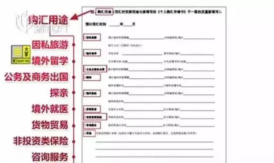 另外,从2019年1月1日开始,只要是单笔或累计交易超过5万人民币,交易后5个工作日内都需要机构报告。若是违规,会被追究刑事责任。申报单上对个人购汇用途做出了详细分类,每个大项后有三四个小项均需要填写!