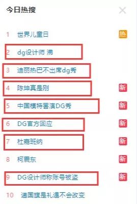 放眼望去,昨天到现在10条热搜有7条都跟DG有关。