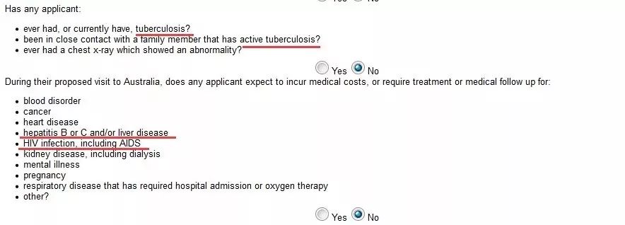 不管是临居还是永居,移民局基本上都会问到下面这些问题:申请人是否有肺结核、乙肝和艾滋病等疾病?一旦体检时被查出来有相关的疾病,申请人获签的可能性大大降低。其实这个倒没有任何歧视的色彩,完全是出于保护自己的国家和民众。