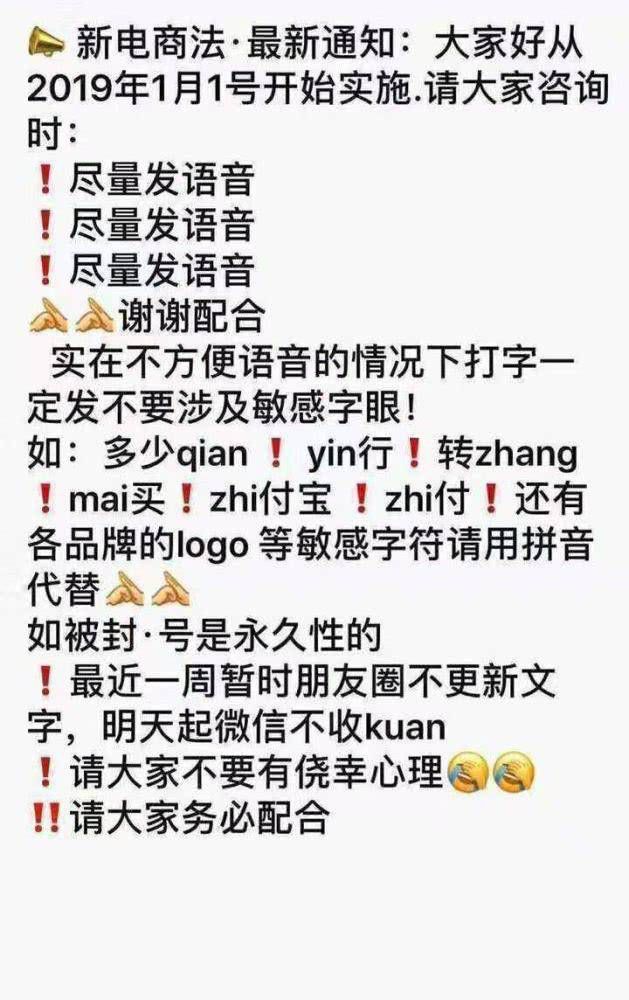 《中华人民共和国电子商务法》于2019年1月1日起正式施行。这是中国电商领域首部综合性法律。新法明确了利用微信朋友圈、网络直播等方式从事商品、服务经营活动的自然人也是电子商务经营者,从事个人代购、微商也须依法办理工商登记取得相关行政许可,依法纳税。根据此法,今后电子商务经营者会受到严格监管,一旦违规将面临最高200万元罚款。因为电商法的实施,大部分代购、微商以及平台电商的小伙伴们都变得非常紧张,为此,脑洞大开!