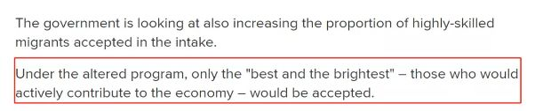除了削减移民配额之外,这一次的改革内容还有一个重点:调整移民结构,增加高技能移民所占的比例。确保只有“最优秀的、最聪明的”,能够真正为澳洲经济做贡献的移民,才会被接受。