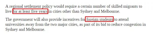 另外,政府再一次强调,技术移民必须远离悉尼墨尔本,前往偏远地区,而且必须定居至少满五年。这正是此前宣布的“上山下乡”计划。目前,澳洲各州的情况差距甚大,新州和维州拼命“往外赶人”,但是偏远地区比如南澳急需需5000名以上的移民。