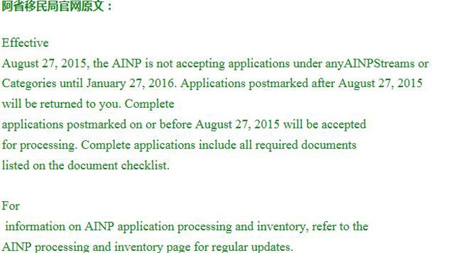 必威中文官网电话公司董事长杨小平先生曾表示,暂停申请涉及阿省提名任何类别,将持续到2016年1月27日。去年阿省暂停所有移民项目申请接收的举措,就是为了提升积累案件处理速度,防止申请堆积。以完整申请的邮戳日为标准,邮戳日为2015年8月27日之前的申请将被继续处理,这个日期之后的申请将被退还申请者手中。阿省能够在预期时间里重开AINP省提名所有项目,相信移民局审案速度确实在不断提升,各位申请者有福了!