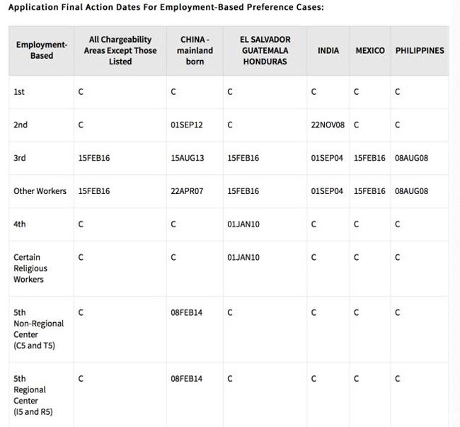 据悉,继去年10月份开始,职业移民类签证(包括EB-5)用了两个月的表B之后,已经连续第六个月退回表A。这也说明,排期问题还是导致中国EB-5申请人迟迟不能获批签证登陆美国的因素。而奥巴马移民改革新政在去年10月份和11月份实施之时,使得中国申请人可以在美国提早递交调整身份申请,获得类似绿卡的合法身份。但是这项新政的最大利好,如今继续无限期停摆。