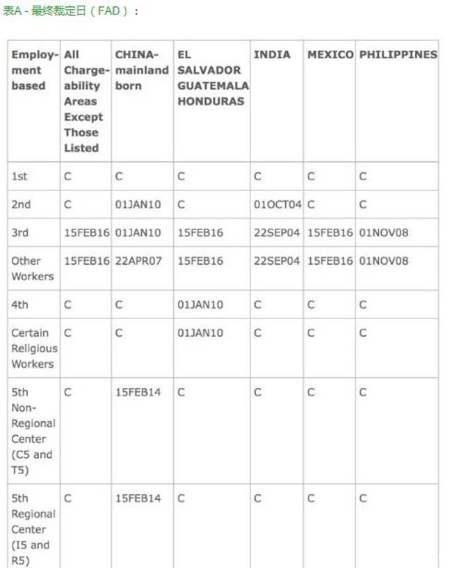 上面是两张排期表,有两个截止日。表A是最终裁定日(FAD),表B是递交申请日(DFA)。表A最终裁定日的截止日前进一周,而表B递交申请截止日一般会保持不变,这取决于移民局的态度。按照老规矩,移民局将在一周之内公布按照表A还是表B来接受I-485的申请。