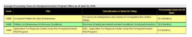 I-526的平均审理所需时间由17个多月变为了16.4个月,稍微加快;