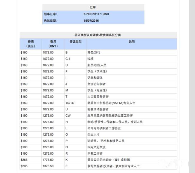 小编从美驻华大使馆和领事馆处获得最新消息,由于受美元兑人民币汇率变动的影响,赴美非移民签证申请费自2016年7月8日起,将按照1美元兑6.7元人民币的汇率进行调整。准确来说,美国签证费并未调价,只是所缴纳的人民币变多了,例如B2签证费仍是160美元,原需缴纳的1056人民币变成了现在的1072人民币。那么,各类签证的具体费用是怎样的呢?