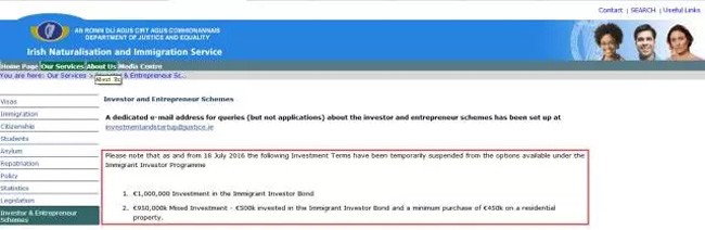 自从英国脱欧公投后,受到最大影响的国家估计就是爱尔兰了。这不,爱尔兰移民局最近公布了一个爆炸性消息,让不少投资者感受到“危机”。据悉,自7月18日起,爱尔兰关停投资移民政策中的100万欧元国债投资移民项目以及50万元国债+45万自住房产混合投资移民。