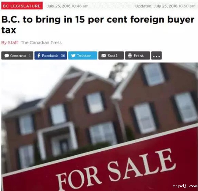 加拿大当地时间7月25日,BC省政府提出新法案,宣布从8月2日起,非加拿大国籍的买家在购买大温地区房产的时候将多支付房价的15%充作房产交易税(Property Transfer Tax)。也就是说,如果购买200万元的住房,则需要多付30万元的附加税。