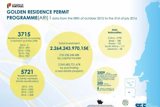 自2012年10月8日起至2016年7月31日,葡萄牙黄金居留许可项目总投资额约为22.64亿欧元,其中房地产项目的投资额为20.45亿欧元。数据表明,以地产投资项目来申请黄金居留许可仍是众多投资人的绝佳选择。