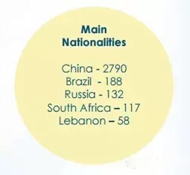 在目前3715位获批的投资者中,中国2790人、巴西188人、俄罗斯132人、南非117人、黎巴嫩58人。中国依旧占据榜首,获批黄金居留签证的人数依然遥遥领先于其他国家。
