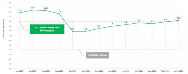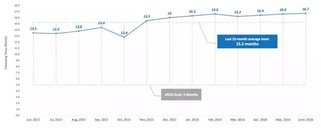 美国分公司收到消息,美国EB-5行业协会(IIUSA)近期发布了一份权威的年度统计数据,时间是从2015年6月到2016年6月。其中,包括分析了 局(USCIS)在这一年里I-526/I-829/I-924三种申请平均审核时间的发展趋势。
