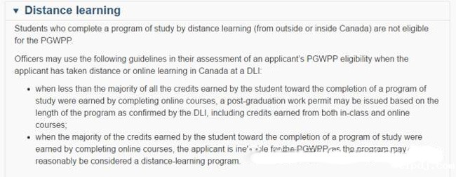对于网络课程是否能申请到毕业工签的问题,移民局做了如下澄清:如果该专业课程从头到尾都被设置为网络授课的话,那么无论是在海外还是加拿大本地修完的该课程,毕业生也不能申请毕业工签。而对于在有DLI#的高校里完成专业课程的毕业生来说,如果该学生仅有少量科目修的是网络课程,移民局则是认可这些学生申请毕业工签的资格。