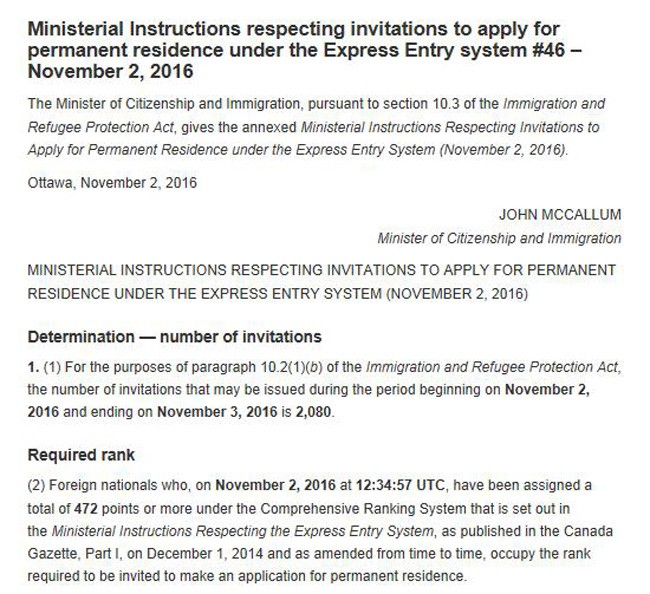 必威中文官网电话温哥华分公司收到最新消息,当地时间11月2日,加拿大移民部公布了快速通道移民计划的第46轮邀请结果。本轮的邀请结果让申请人喜出望外,不但筛选分数再次下降,邀请人数更是突破两千,创下迄今为止最高数字!
